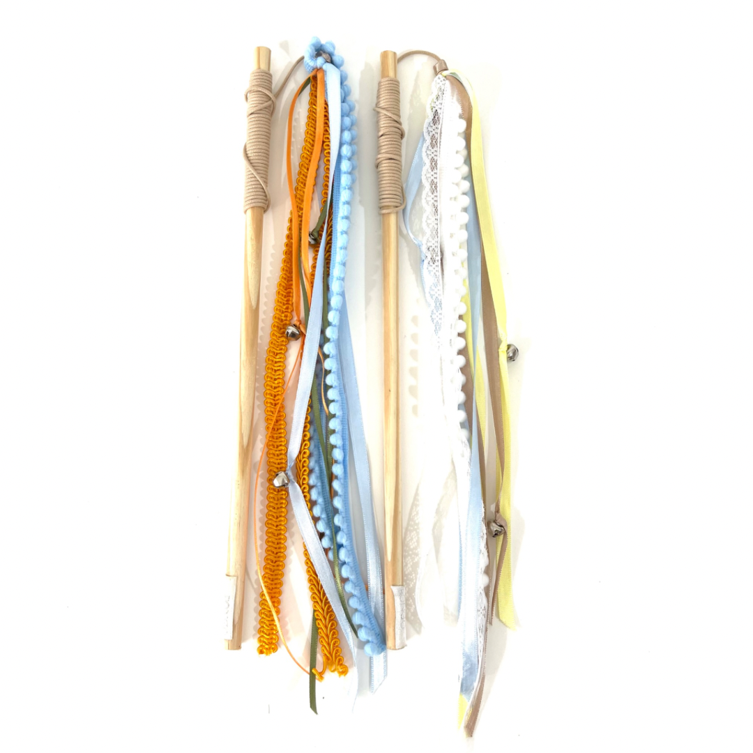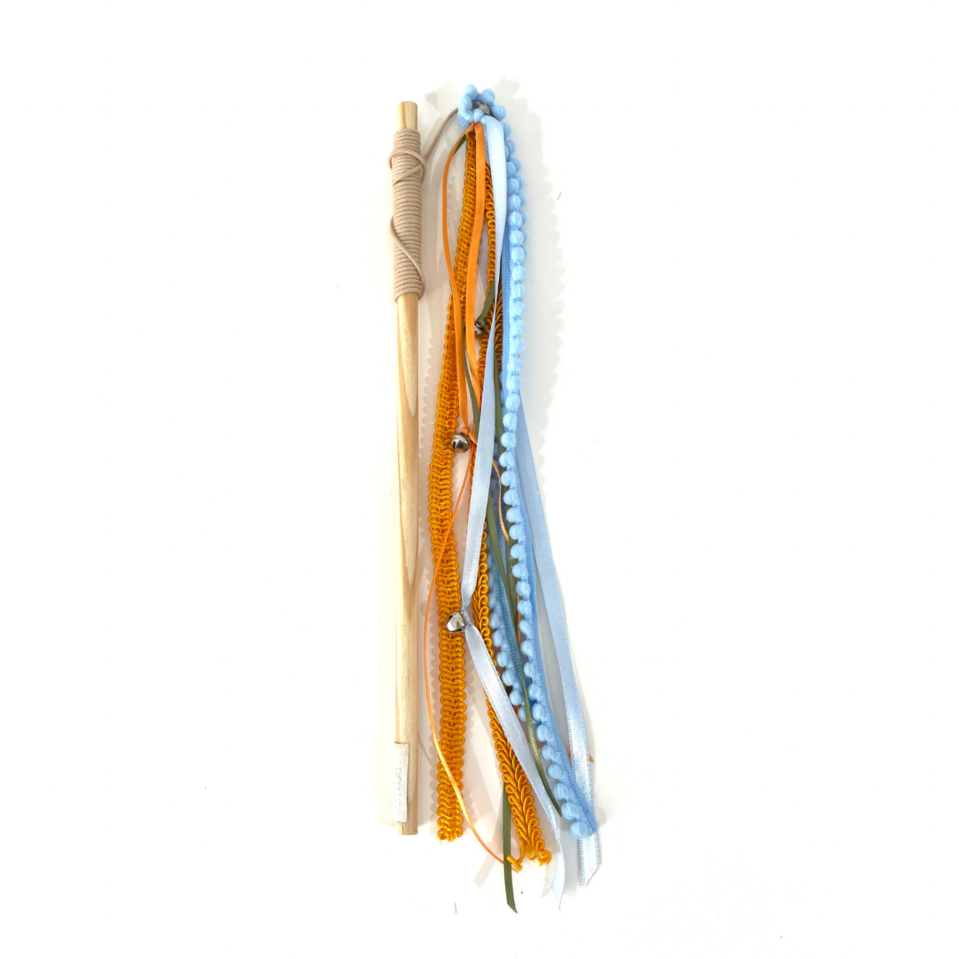 O brinquedo Fitas para gatos é feito com vareta e fios com fitas e passamanarias, é ideal para seu momento de brincadeiras junto a ele. Para animais de todas as idades, essas brincadeiras distraem, reduzem a ansiedade e estimulam a prática de atividades físicas!